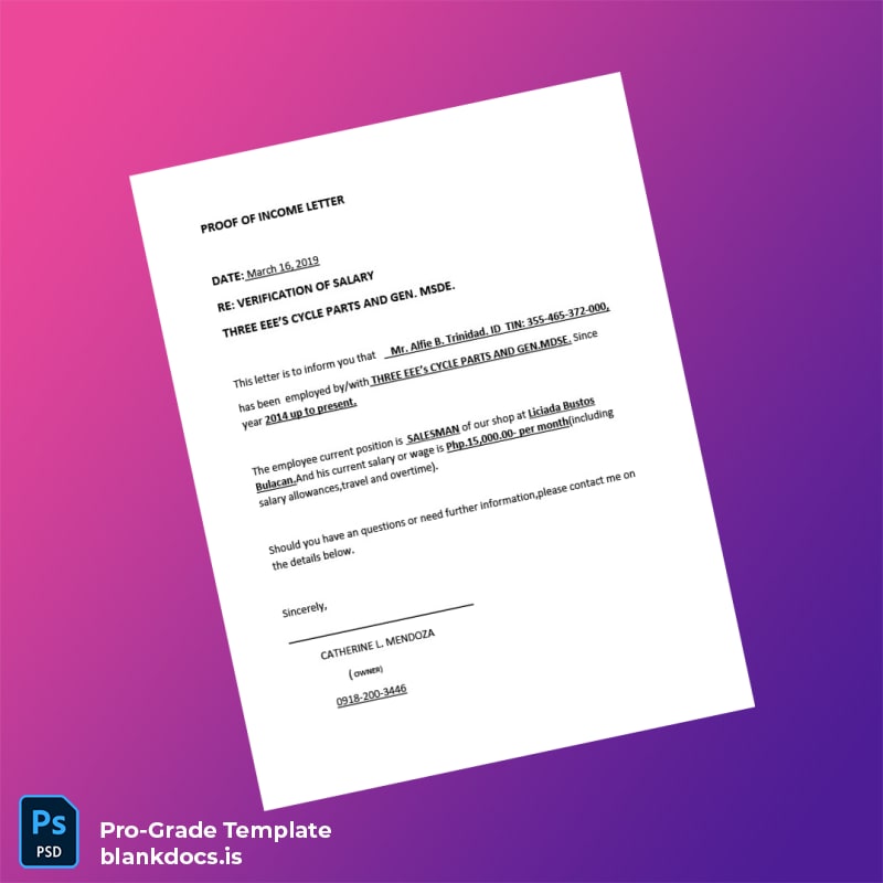 Don’t let paperwork slow down your HR processes. Equip yourself with the Philippines Three EEE s Cycle Parts Employment Verification Letter Template (Word & PDF) to deliver accurate, professional, and customizable employment proofs with ease. Take advantage of a blank template that puts control and customization in your hands. Purchase now and transform your document management workflow immediately.