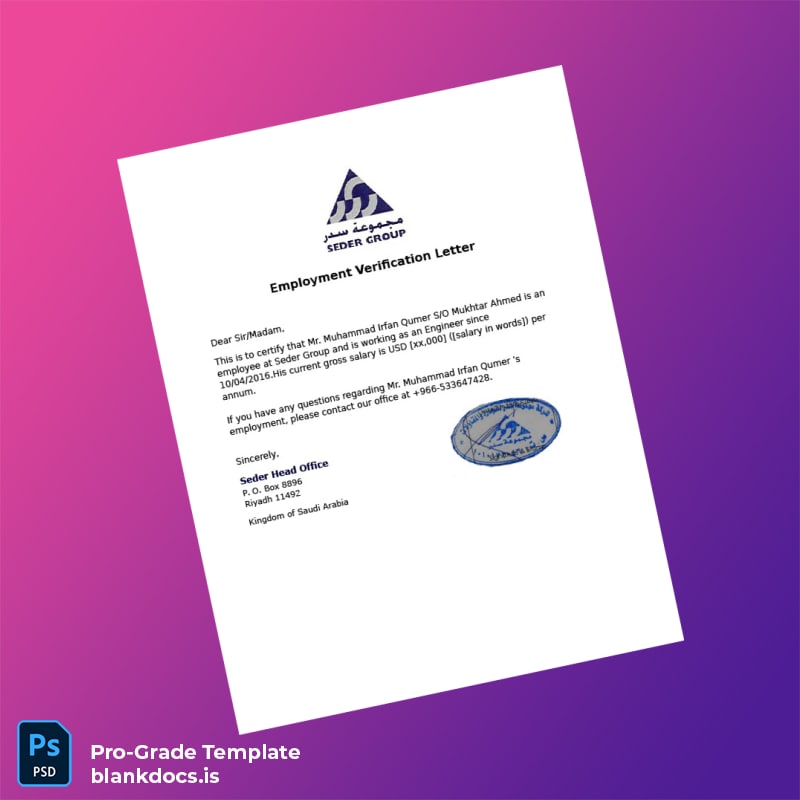 Ready to take control of your employment verification needs? Download the Saudi Arabia Seder Group Employment Verification Letter Template (Word & PDF) today and enjoy a seamless, professional, and customizable document experience. Boost your productivity and ensure credible communication for your employment status with confidence.