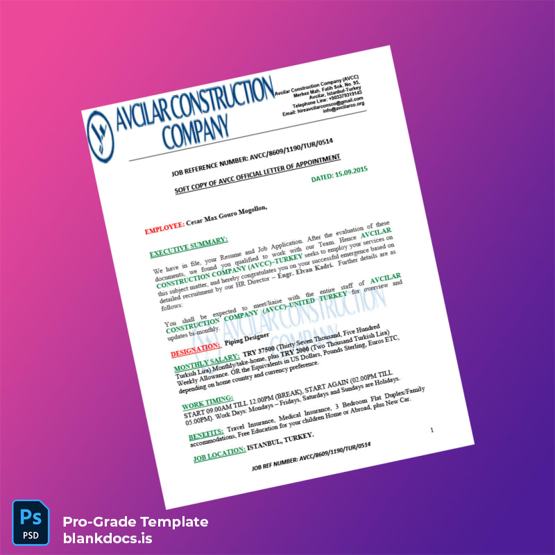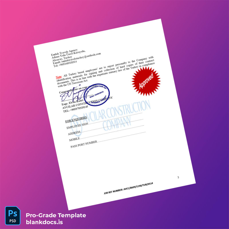 Take control of your employment verification communications today with the Turkey Avcilar Construction Company Employment Verification Letter Template. Purchase, download, and customize your blank Word and PDF template to deliver precise, professional employment confirmation in minutes.