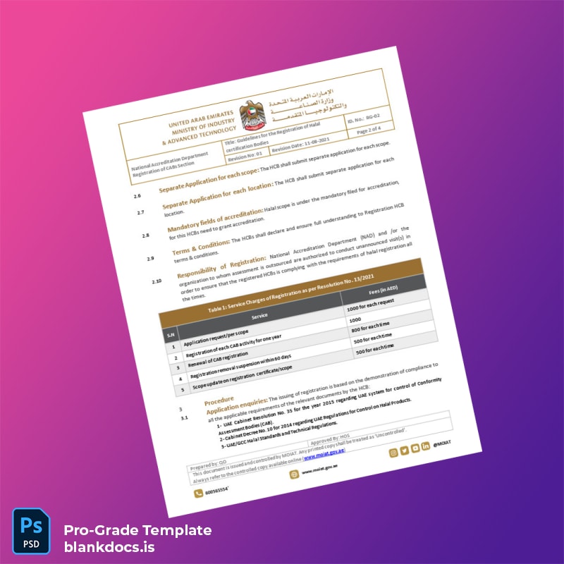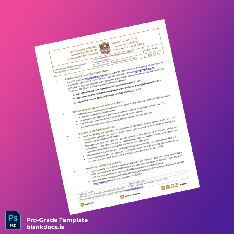 Don’t let cumbersome paperwork slow your certification process. Invest in the Blank UAE Ministry of Industry and Advanced Technology Halal Certification Body Registration Guidelines Template in Word and PDF format today to ensure professional, compliant, and hassle-free document preparation. Empower your team to focus on growth while handling administrative requirements flawlessly.