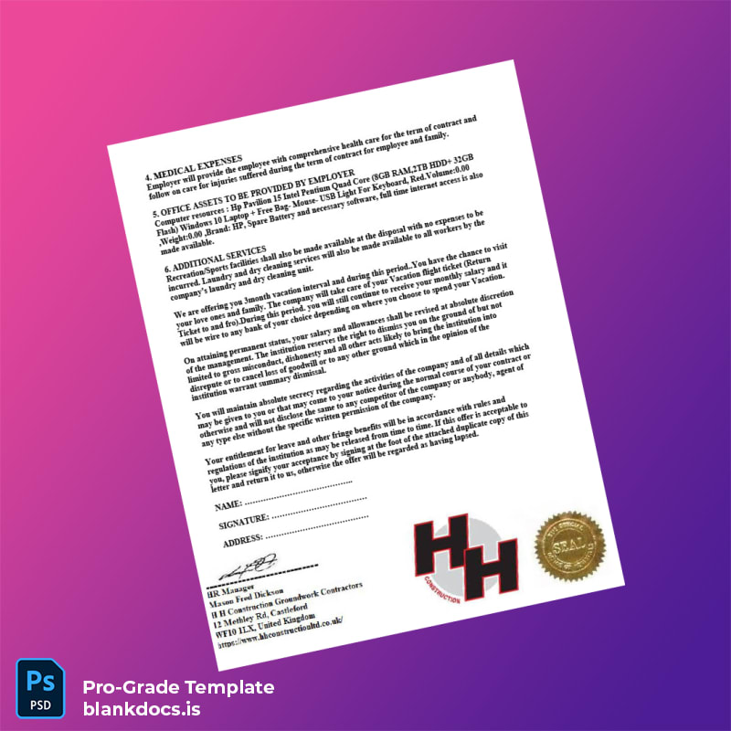 Be the first to review “Blank United Kingdom H H Contractors Ltd Employment Verification Letter Template (Word/PDF) 2 page”