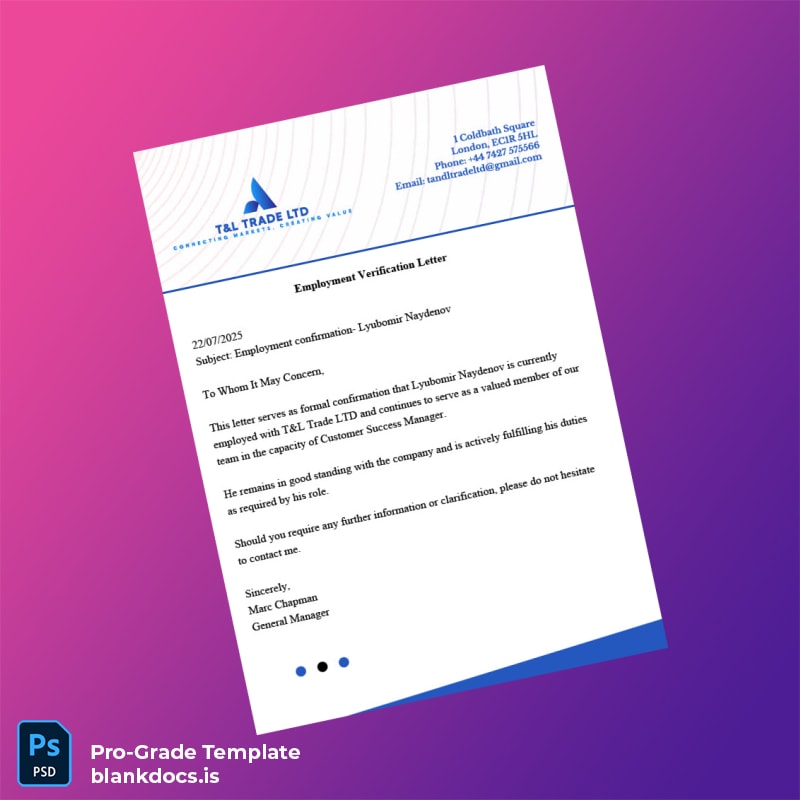 Streamline Your Employment Verification Process with the United Kingdom T L Trade LTD Employment Verification Letter Template