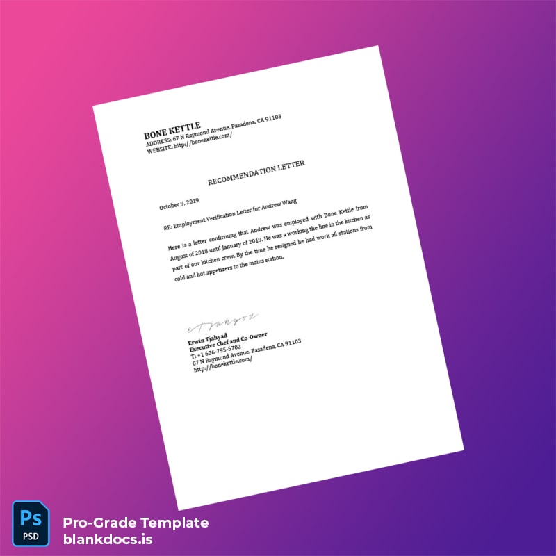 Streamline your documentation tasks with the United States Bone Kettle Employment Verification Letter Template (Word & PDF). Download now to create accurate, professional employment verification letters quickly and confidently every time.