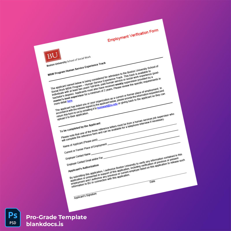 Don’t let verification requests disrupt your workflow. Download the Blank United States Boston University Employment Verification Letter Word and PDF Template now to create tailored, authoritative proof of employment letters that elevate your professional communication.