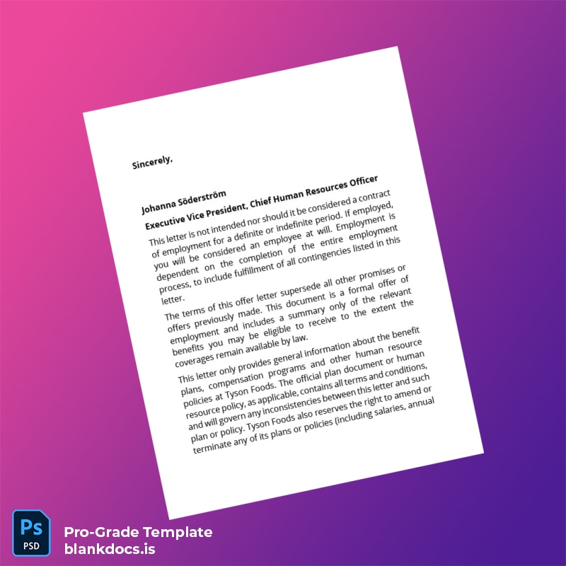Stop wasting time with generic templates that don’t meet your precise needs. Acquire the United States Tyson Foods Incorporated Employment Verification Letter Template today and experience seamless document creation that supports your professional credibility and operational efficiency. Whether you need quick verification or comprehensive employment documentation, this template empowers you to craft exact letters in moments. Elevate your HR documentation process now by downloading your blank, editable template and ensuring compliance and professionalism in every letter delivered.