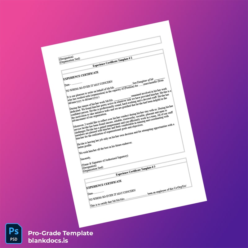 Each file comes with embedded fonts and consistent styling to ensure your experience certificate maintains a professional and uniform appearance.