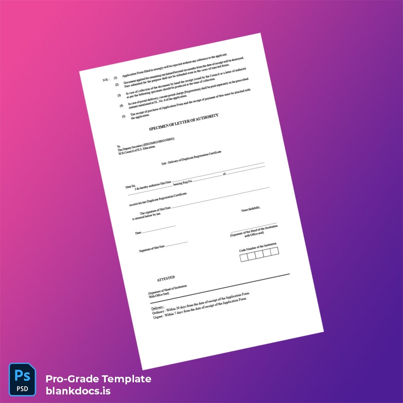 Managing lost or expired official documents can often be stressful and time-consuming. The West Bengal Council of H S Education Duplicate Registration Certificate Application Template (Word & PDF) offers a practical and professional solution for educators, administrative staff, and legal professionals seeking a reliable way to reapply efficiently.