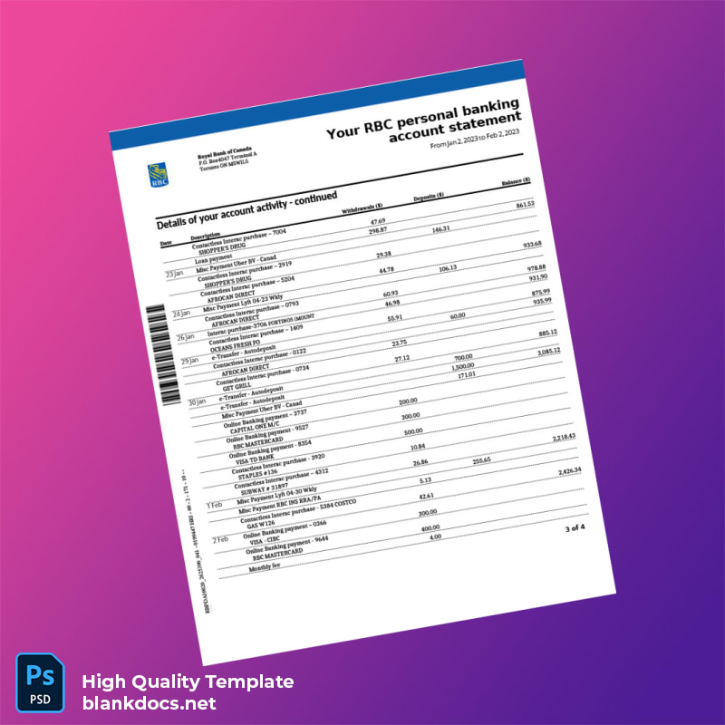 Canada RBC Bank Statement Template – Your Ultimate Solution