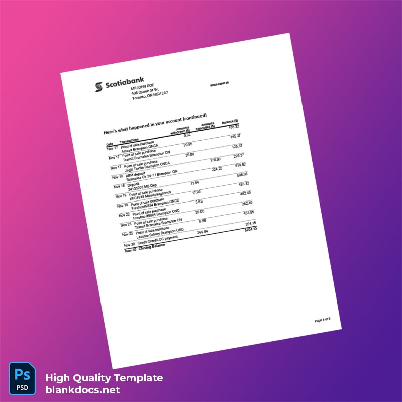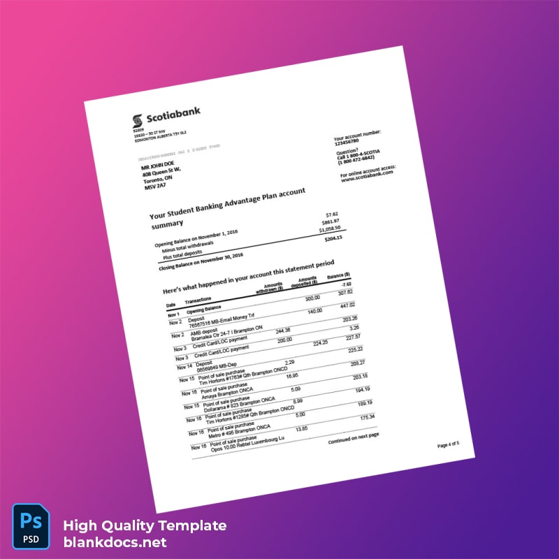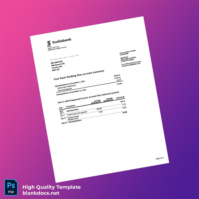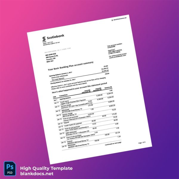 Canada Scotiabank Bank Statement Template: A Quick Solution for Your Documentation Needs