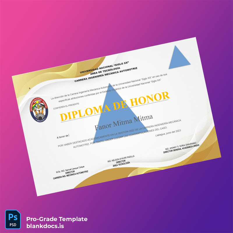 Custom Bolivia Universidad Nacional _Siglo XX_ Honor Diploma Template (Word & PDF) Fully Customizable
