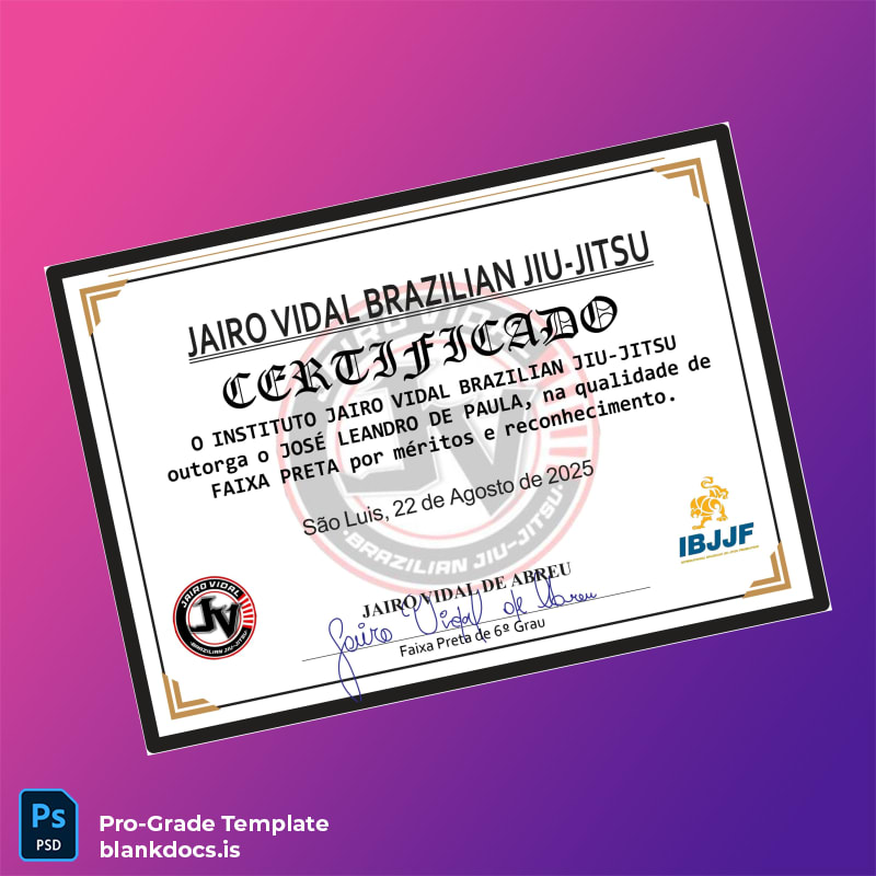 Customizable Brazil Brazil Jairo Vidal Brazilian Jiu-Jitsu Black Belt Certificate Template