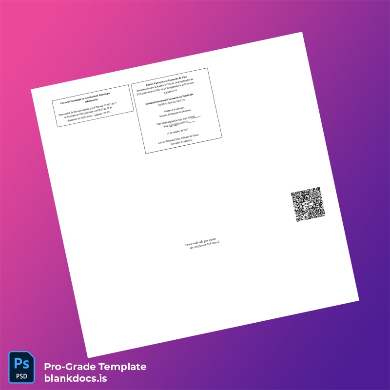 Editable Digital Diploma Template for Brazil Centro Universitário Leonardo da Vinci