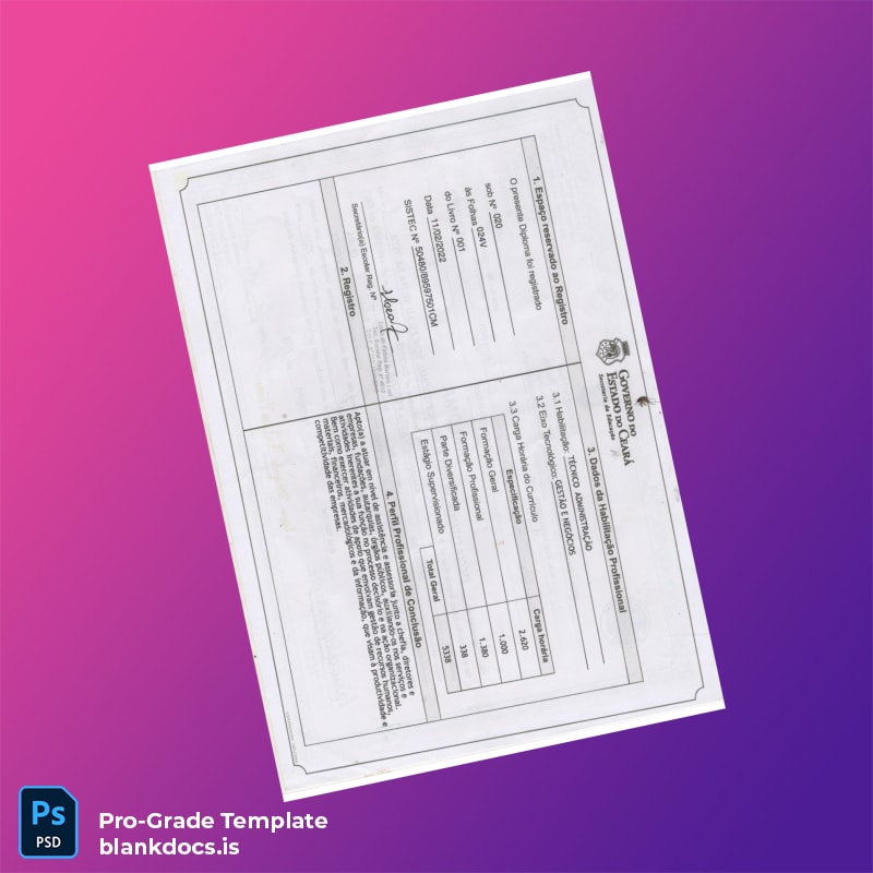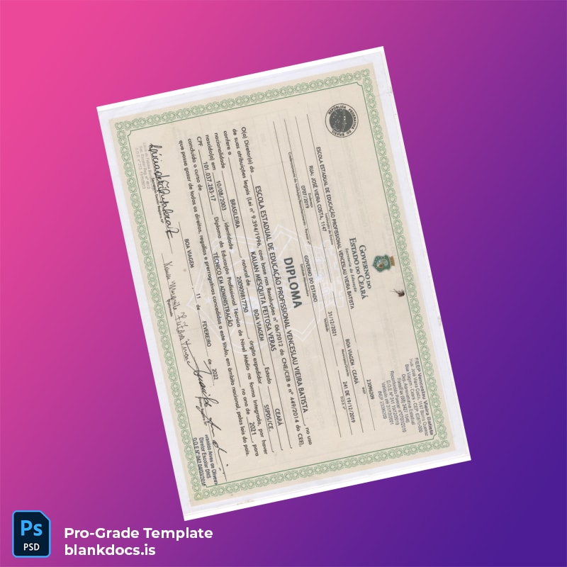 Customizable Technical Diploma Template for Brazil Escola Estadual de Educação Profissional Venceslau Vieira Batista