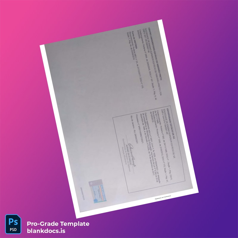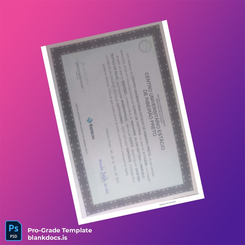 This editable diploma template offers a fully customizable solution for professionals seeking a high-quality, replacement diploma form. Designed specifically for the Brazil Estácio de Sá University Bachelor of Arts in History degree, this digital diploma download features both Word and PDF files, enabling seamless editing and professional presentation.