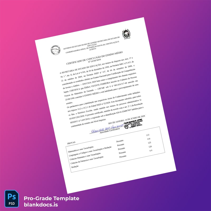 Ideal for professionals who have misplaced original diplomas or require quick, professional substitutes, this editable diploma template eliminates common administrative hurdles. Users avoid the complexities of designing from scratch, while ensuring each detail aligns with official Rio de Janeiro government standards.