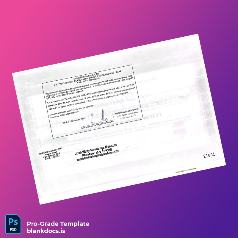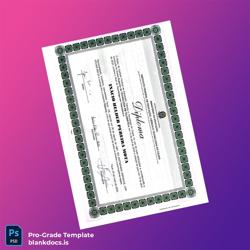Customizable Brazil Instituto Federal de Educação, Ciência e Tecnologia do Ceará Technology Diploma Template