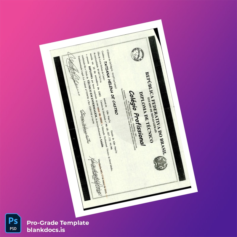 Download and Customize Your Brazil Professional Technical Diploma Template