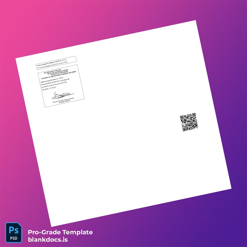 This editable diploma template offers a practical and professional solution for creating a replacement Bachelor of Science in Geography certificate from Brazil São Paulo State University Júlio de Mesquita Filho. Designed in Word and PDF formats, this blank diploma form seamlessly blends ease of use with high-quality design, enabling users to customize all key elements with precision.