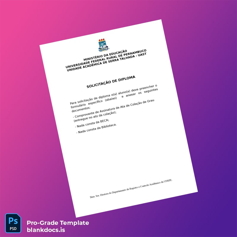 Customizable Brazil Universidade Federal Rural de Pernambuco UAST Diploma Request Template