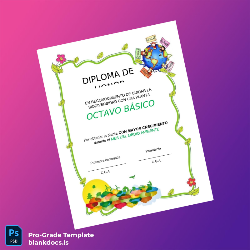 Discover the Customizable Chile Diploma of Honor in Recognition of Caring for Biodiversity Template (Word & PDF)