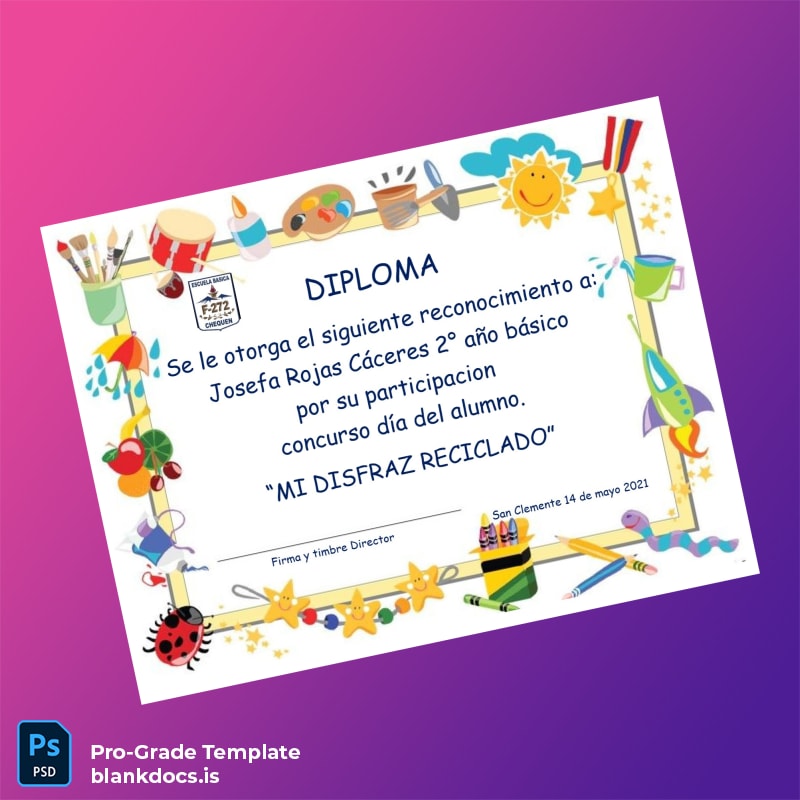 Customizable Chile Escuela Básica F-272 Chequén Diploma Certificate Template
