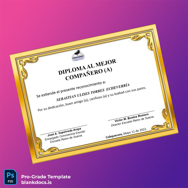 Discover the Chile Escuela Reino de Suecia Diploma for Best Companion Template (Word & PDF)