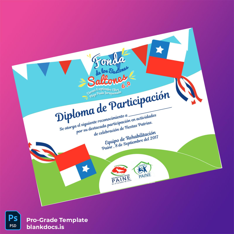 Professional Editable Diploma Template for Chile Municipality of Paine Participation