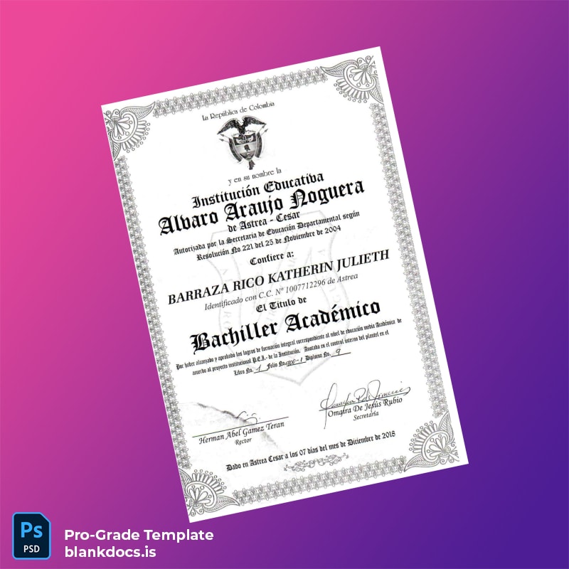 Download your Colombia Alvaro Araujo Noguera Institution High School Diploma Template instantly and start customizing immediately. Benefit from a comprehensive digital diploma download package that supports professional printing and personal edits, making it a standout choice among editable diploma templates available today.