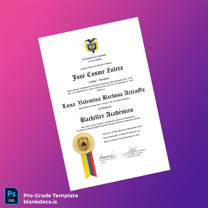 Professional Colombia Colegio Integral de Jóvenes y Adultos Bachiller Académico Template (Word & PDF)