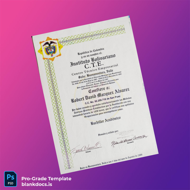 Discover the Colombia Instituto Bolivariano C.T.E. Academic Bachelor Diploma Template (Word & PDF)