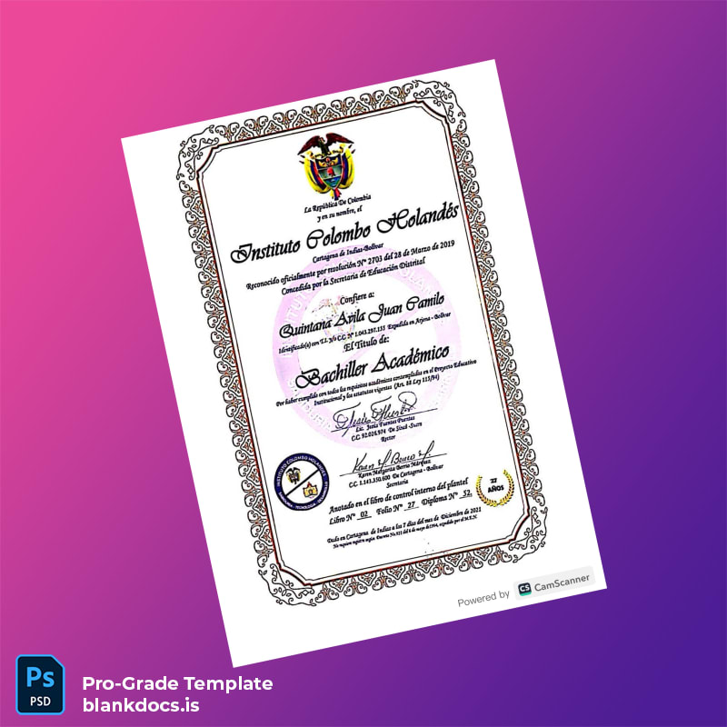 Discover the Colombia Instituto Colombo Holandés Academic Bachelor Diploma Template (Word & PDF)