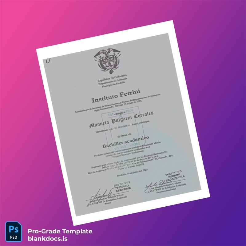 Colombia Instituto Fertini High School Diploma Template (Word & PDF)