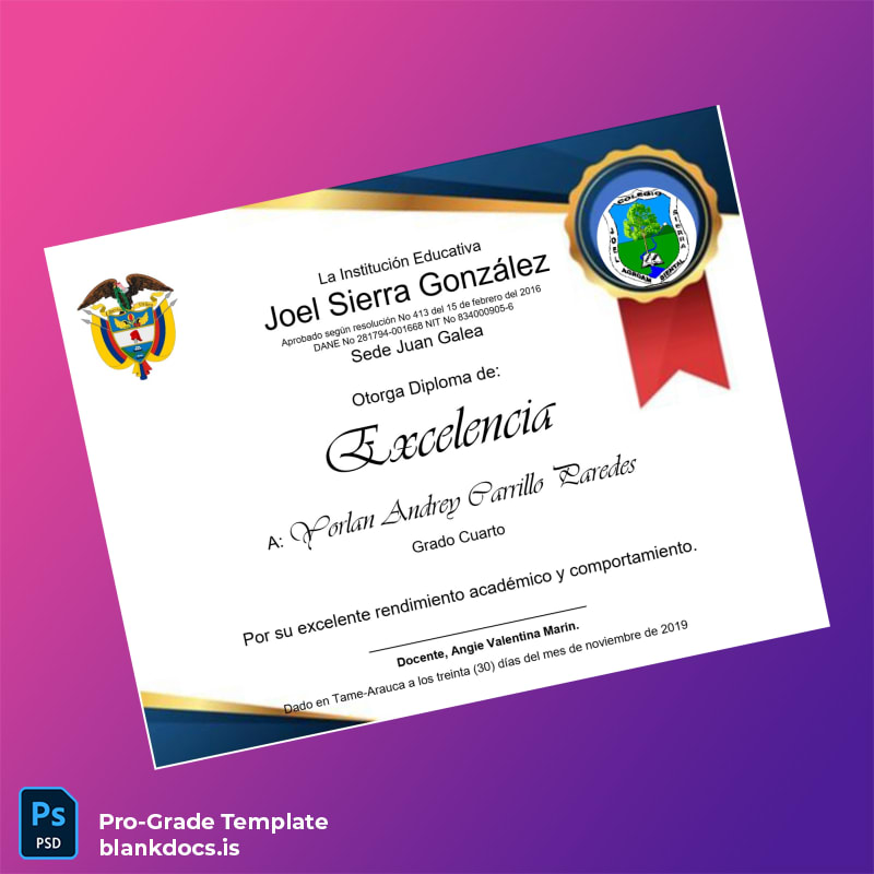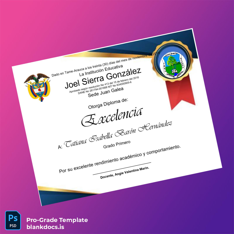 Colombia Joel Sierra González Excellence Diploma Template (Word & PDF) Overview