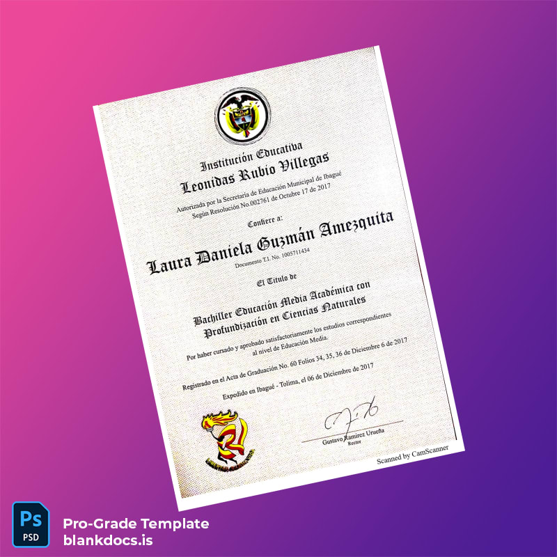 Discover the Colombia Leonidas Rubio Villegas Educational Institution Bachelor of Education with emphasis in Natural Sciences Certificate Template, designed exclusively for professionals requiring a precise and editable diploma template in Word and PDF formats. This well-crafted template offers seamless customization capabilities, ideal for educators, administrators, and institutions looking to create accurate and professional replacement diplomas or novelty certificate designs.