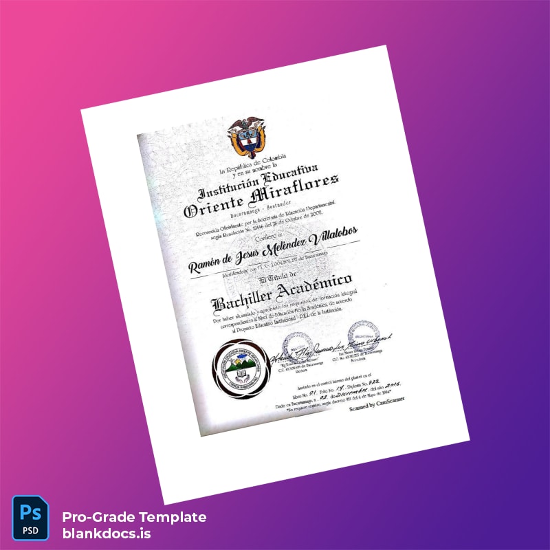 Colombia Oriente Miraflores Academic Bachelor Diploma Template (Word & PDF) Overview