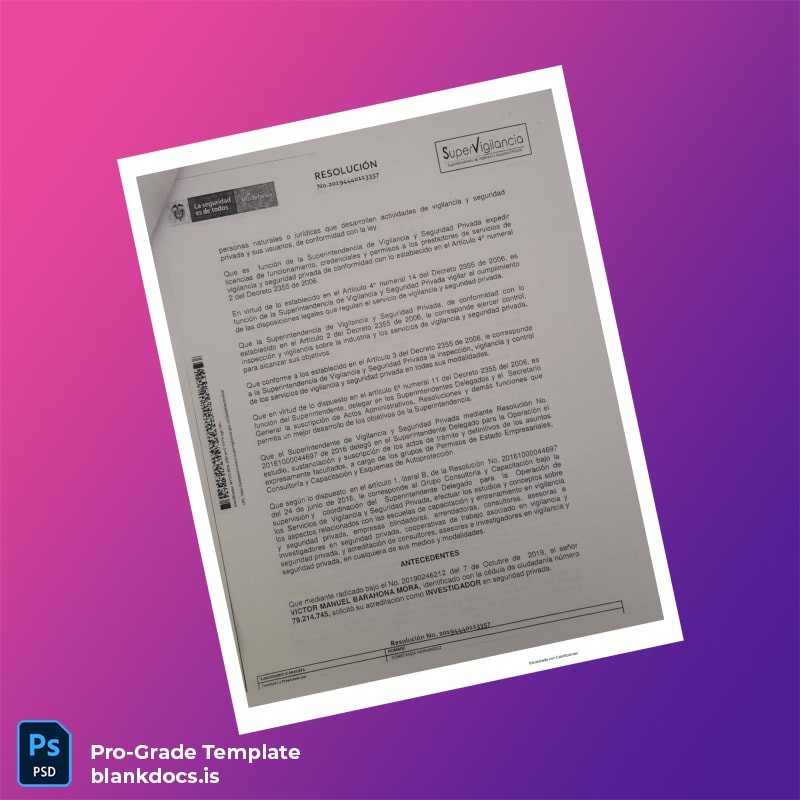 This editable diploma template offers a professional and easily customizable solution for individuals or organizations needing a replacement or novelty diploma design. Designed specifically for the Colombia Supervigilancia Investigator certificate, this blank diploma form is provided in both Word and PDF formats, allowing seamless editing and formatting flexibility.