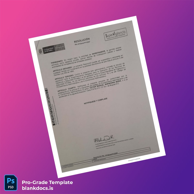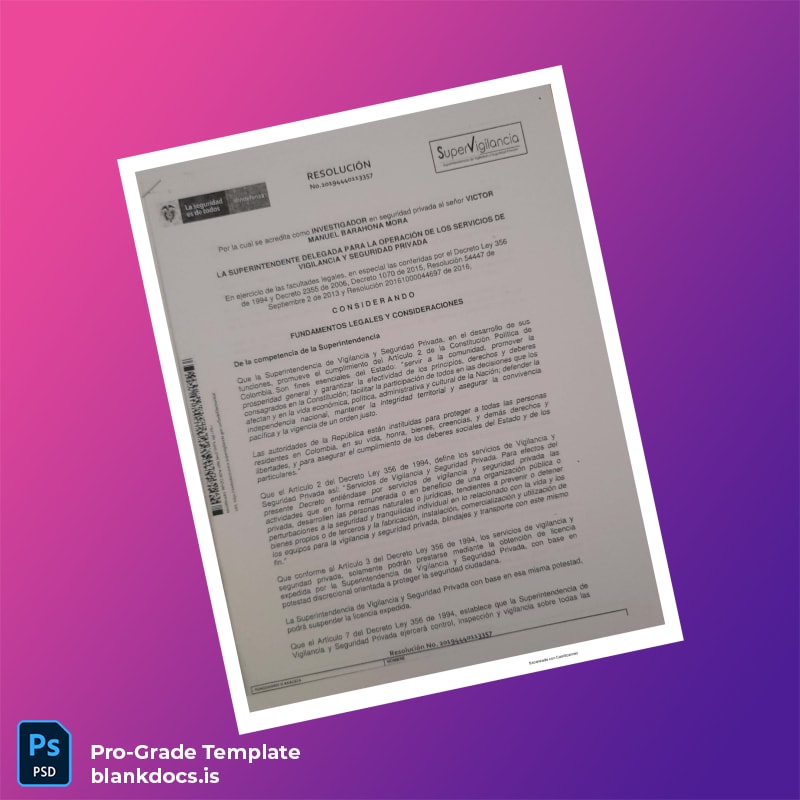 Purchase this digital diploma download now to gain immediate access to your editable Colombia Supervigilancia Investigator Diploma Template. Customize content effortlessly and produce a high-quality diploma that reflects your professional achievements flawlessly.