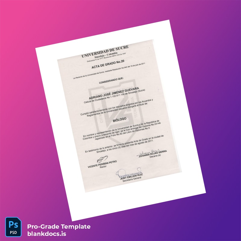 Customizable Colombia Universidad de Sucre Biologist Diploma Template (Word & PDF)