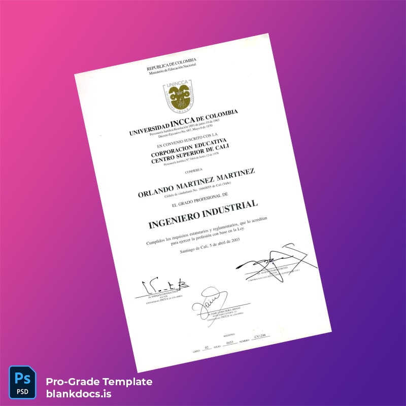 This Colombia Universidad Incca de Colombia Industrial Engineer Diploma Template (Word & PDF) is a smart investment for professionals seeking quality, authenticity, and user-friendly customization in diploma certificates.