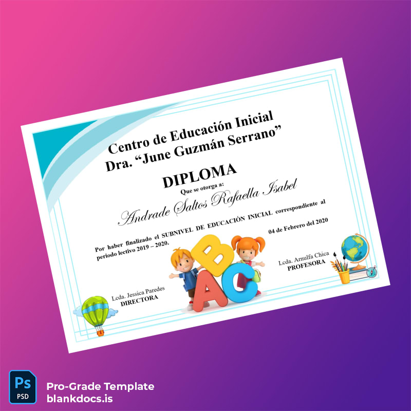 Ecuador Centro de Educación Inicial _Dra. June Guzmán Serrano_ Diploma in Initial Education Certificate Template (Word & PDF)