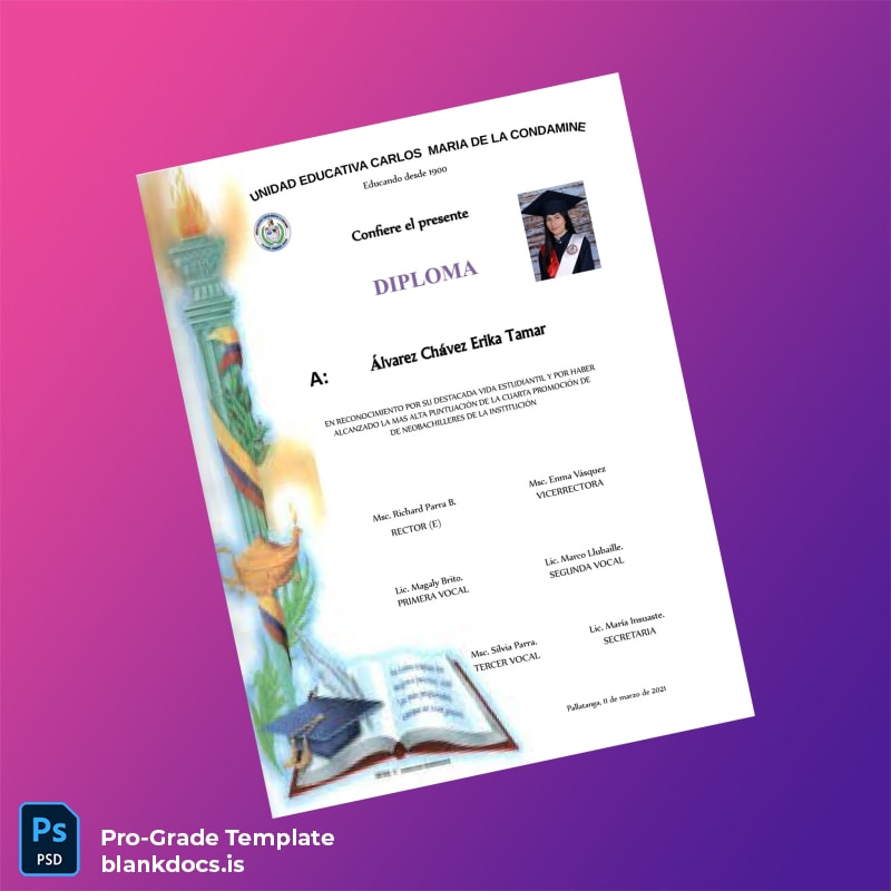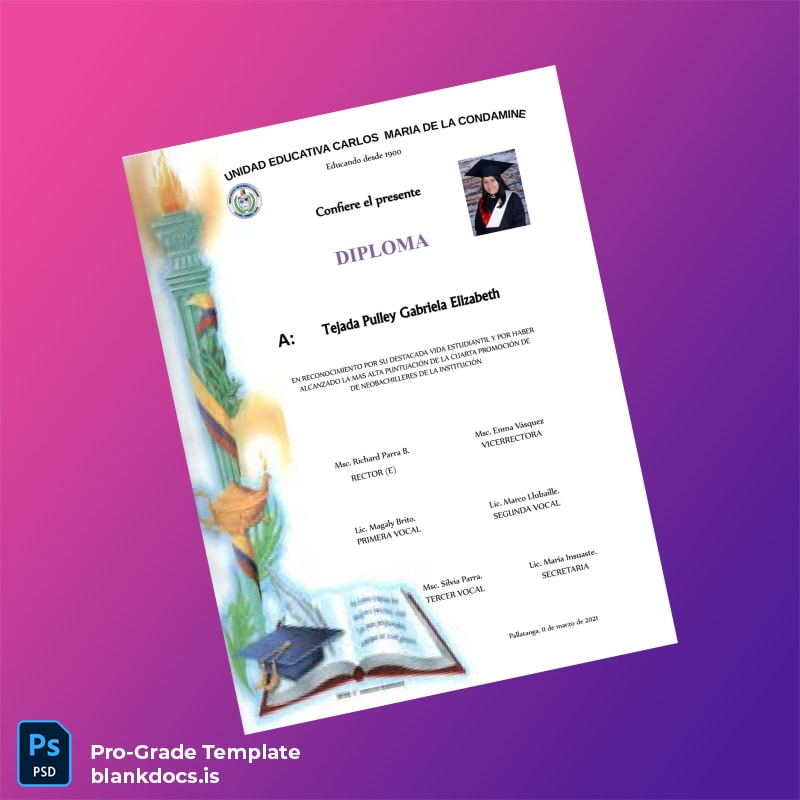 Discover the Ecuador Palliatanga Graduation Diploma Template (Word & PDF)