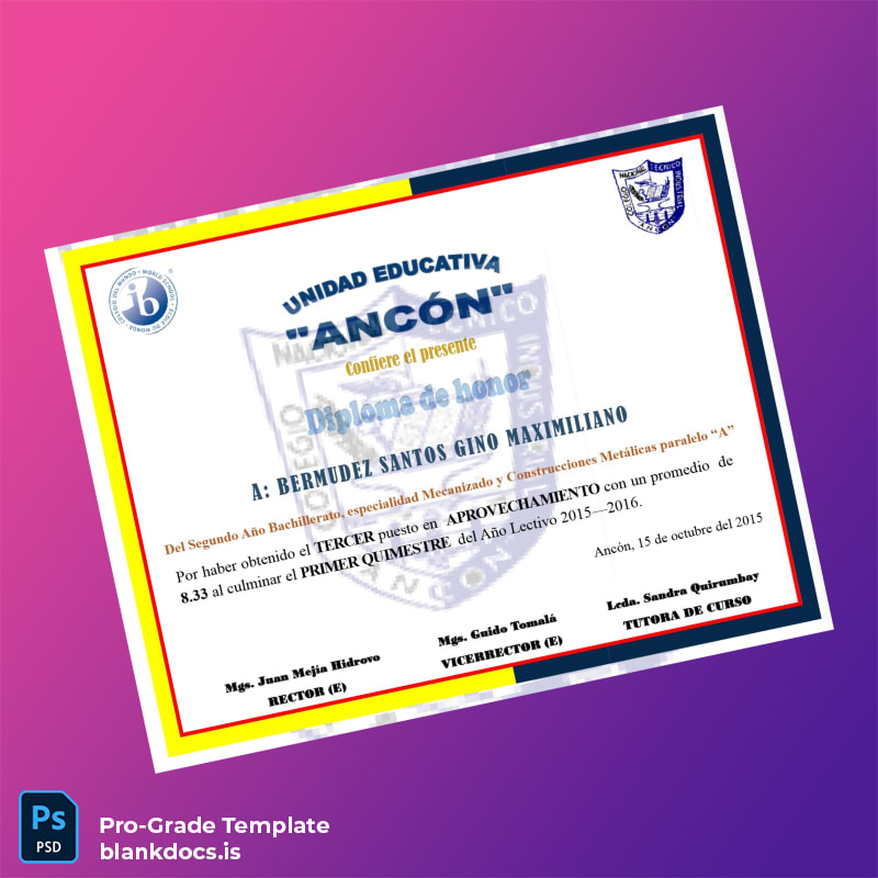 Experience Professional Customization with Ecuador Unidad Educativa _Ancón_ Honor Diploma Template