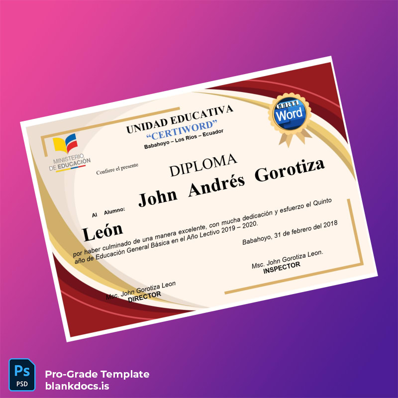 Customizable Ecuador Unidad Educativa _Certiword_ Basic Education Diploma Template