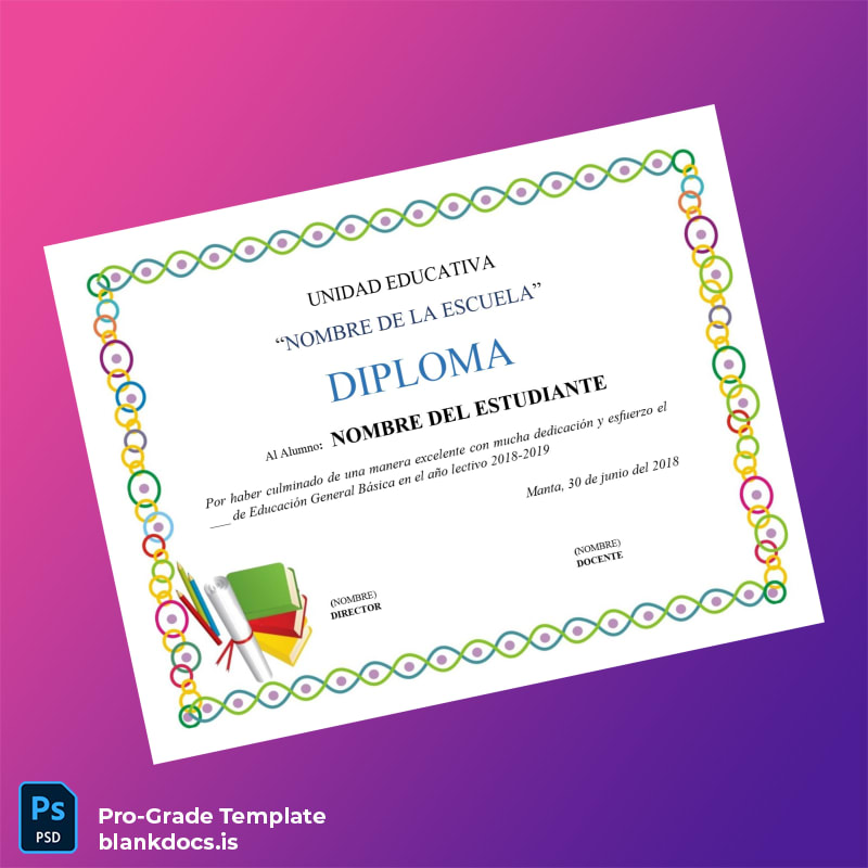 Discover the Ecuador Unidad Educativa Nombre de la Escuela Basic and Preschool Education Diploma Template (Word & PDF), a versatile and fully editable certificate design tailored to meet the needs of educational institutions and professionals seeking to create authentic diplomas quickly. This digitally downloadable template features high-resolution vector graphics, ensuring crisp, professional printing results every time.