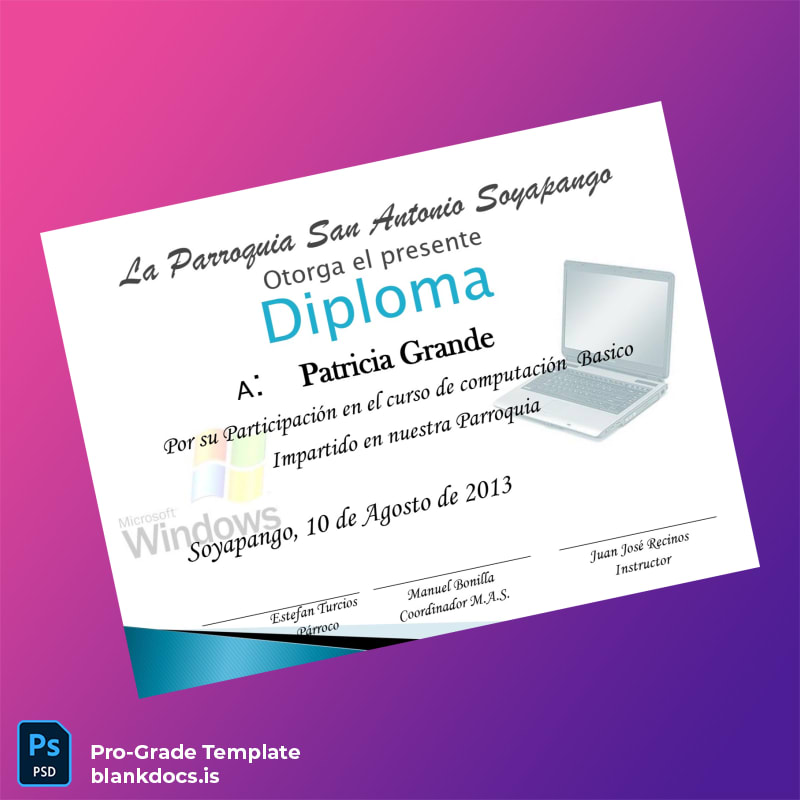 Customizable Diploma Template for El Salvador Parroquia San Antonio Soyapango Basic Computing Diploma