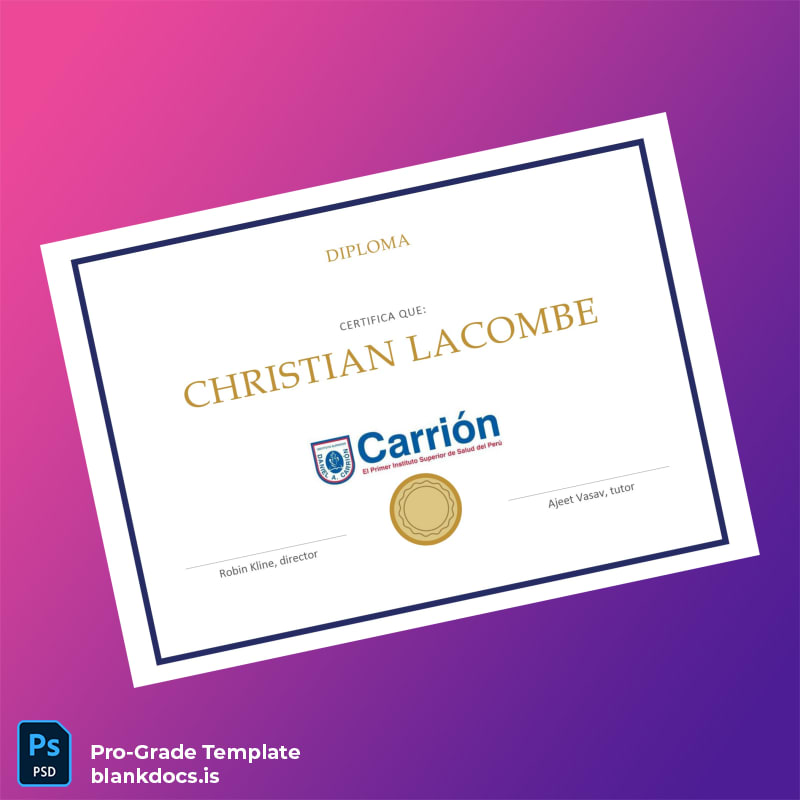 Download the editable Peru Carrión Institute High School Diploma Template (Word & PDF). Fill and customize this blank template easily for professional use.