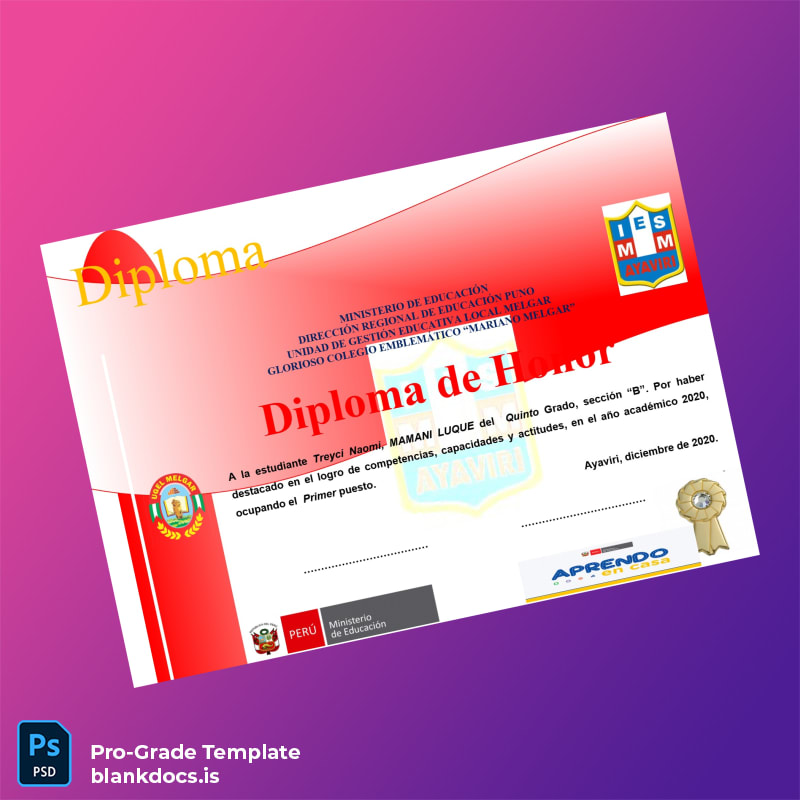 Editable Peru Colegio Emblemático Mariano Melgar Honor Diploma Template