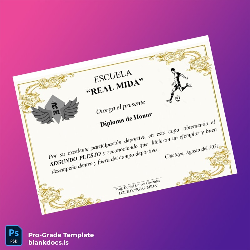 Discover the Peru Escuela _Real Mida_ Diploma of Honor Template (Word & PDF)