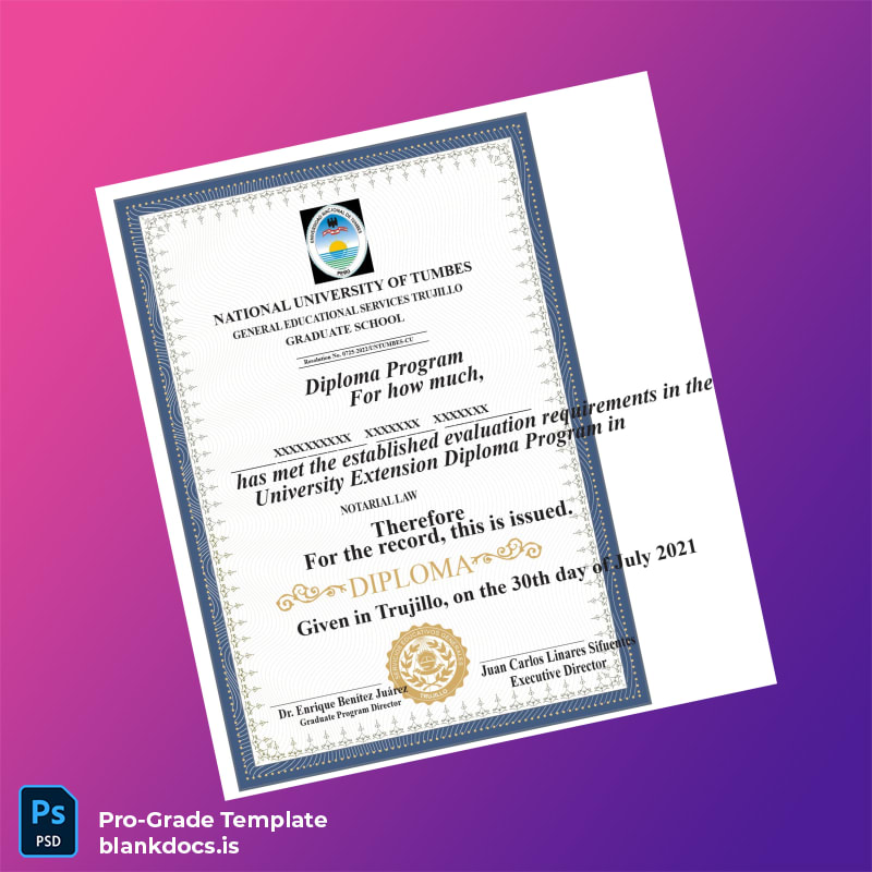 Custom Peru National University of Tumbes Diploma Template (Word & PDF) Fully Customizable 2 Page