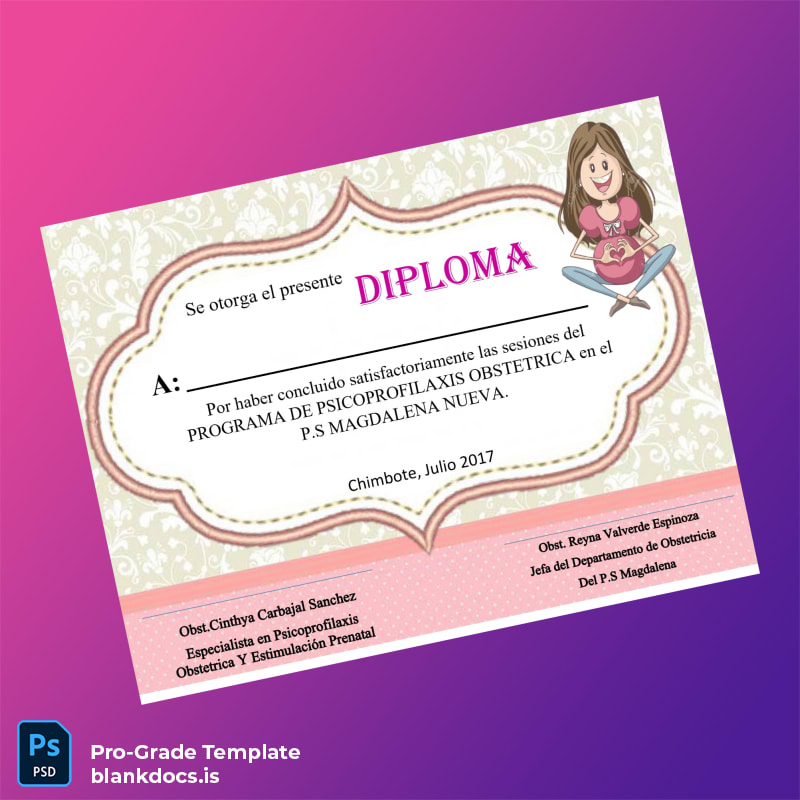 Peru P.S Magdalena Nueva Diploma in Obstetric Psychoprophylaxis Template (Word & PDF)